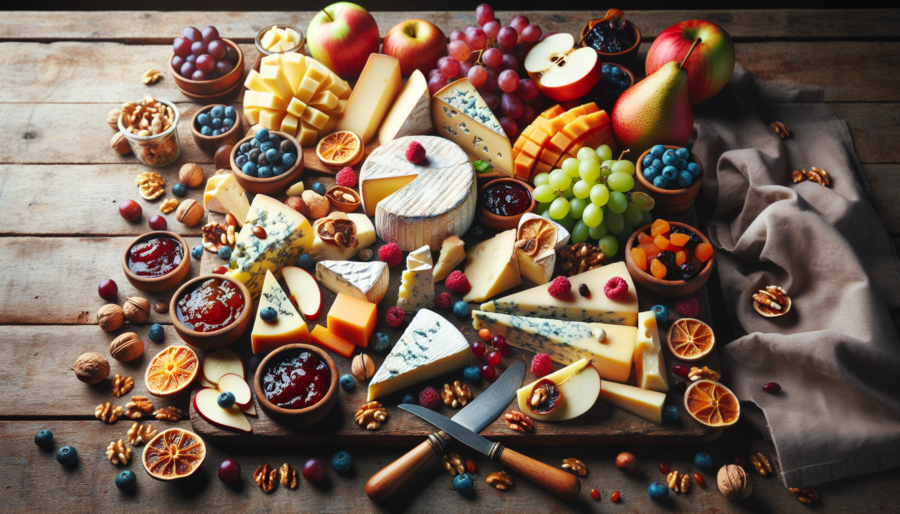 Încercați să creați alături de fiecare brânză o potențială asociere cu fructe și gemuri. De exemplu, brânza albastră Roquefort se potrivește de minune cu gemul de smochine, iar Brie-ul este desăvârșit alături de migdale sau de mere. Un alt exemplu ar fi cheddarul maturat care este excelent cu nucile și strugurii. Astfel, fiecare invitat poate experimenta diferite combinații și poate descoperi preferințe noi.
