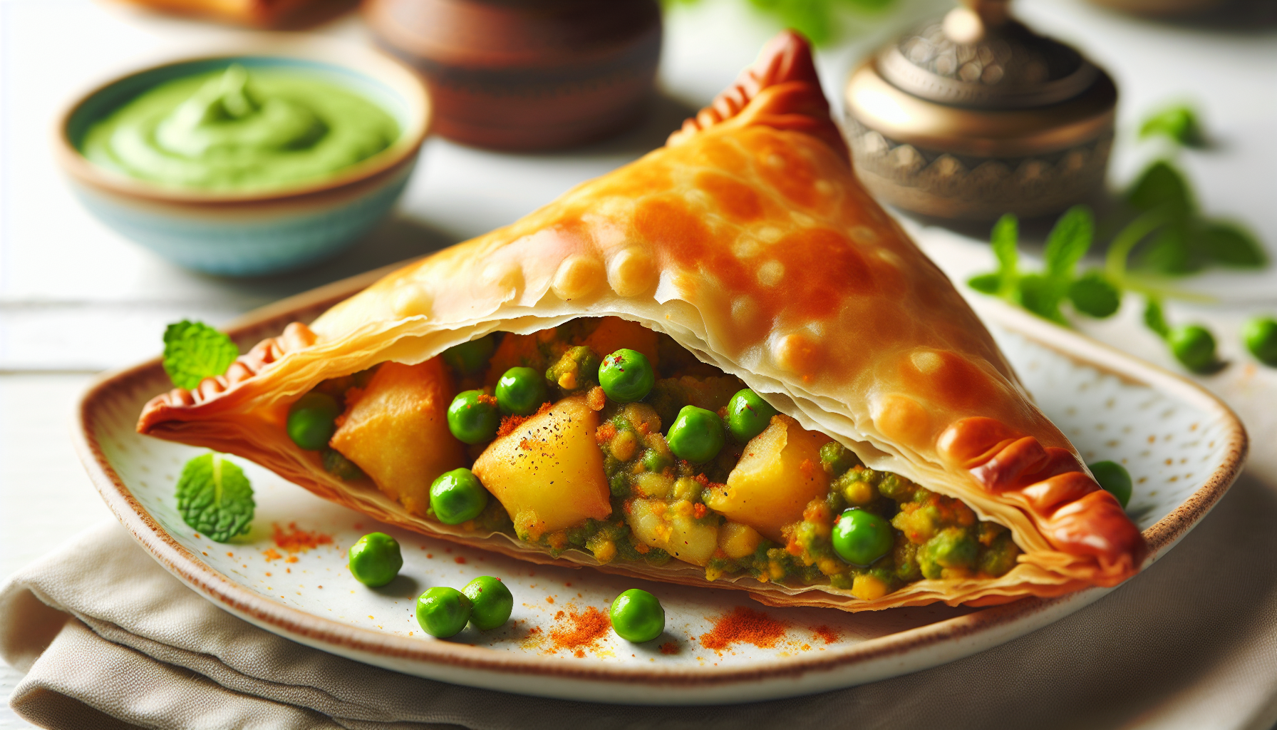Samosa cu cartofi și mazăre este o varianta vegetariana apreciată pentru contrastul dintre coaja sa crocantă și umplutura moale și aromată. Aceste plăcințele sunt umplute cu cartofi fierbinți, mazăre dulce și o combinație de condimente care adaugă profunzime și savoare fiecărui mușcătură. Tradițional prăjite în ulei, samosele își mențin savoarea chiar și atunci când sunt coapte la cuptor, oferind o opțiune mai sănătoasă. Originea acestor delicii datează de secole, fiind un preparat tradițional care variază ușor de la o regiune la alta, dar păstrându-și esența delicioasă.