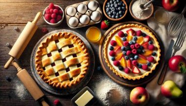- Tartă cu fructe – Tartă cu bază de aluat și umplutură de cremă și fructe proaspete.