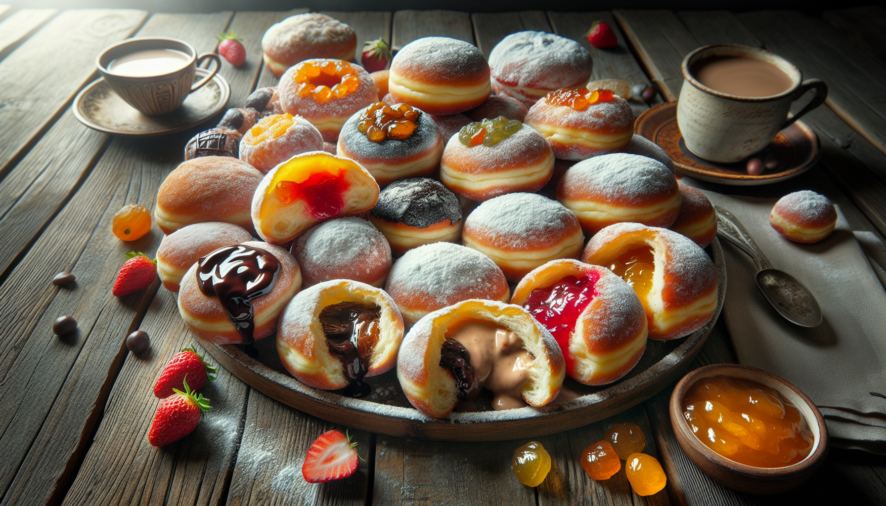 Înainte de prăjire, puteți opta să umpleți aluatul cu diverse ingrediente, fie dulci, fie sărate. Utilizați un poș cu vârf rotund pentru a injecta umplutura în gogoșile abia scoase din ulei și calde. Iată câteva sugestii populare de umpluturi: