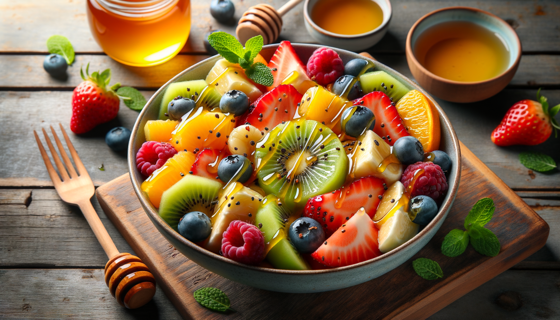 Începeți prin spălarea tuturor fructelor sub jet de apă rece. După ce le-ați curățat și tăiat conform indicațiilor de mai sus, transferați fructele într-un bol mare. Într-un bol mic, amestecați sucul de lămâie cu mierea până când mierea se dizolvă complet. Turnați acest amestec peste fructe și amestecați delicat cu o lingură de lemn sau o spatulă de silicon, pentru a evita strivirea fructelor. Lăsați salata de fructe să se odihnească în frigider pentru cel puțin o oră înainte de servire pentru ca aromele să se combine armonios. Trucuri și secrete