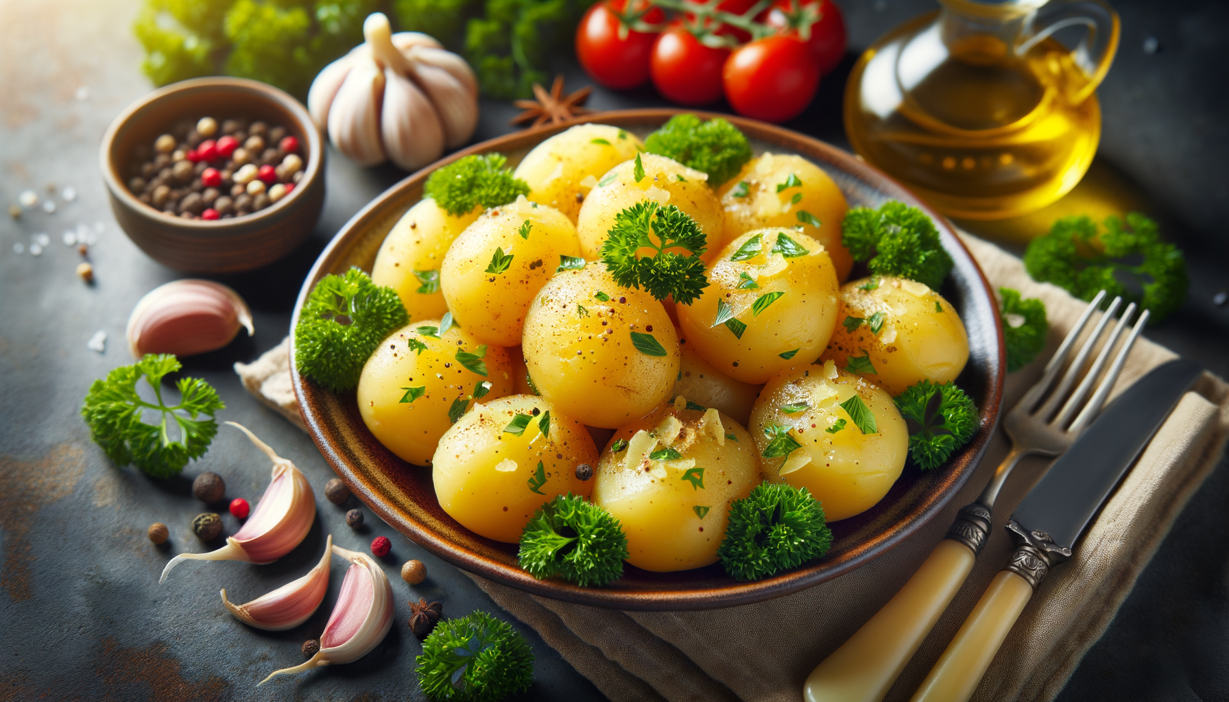 Cartofii natur cu pătrunjel reprezintă o garnitură clasică și simplă, perfectă pentru a însoți diverse feluri de mâncare proteice. Acest preparat nu doar că este delicios și sănătos, dar poate fi și o alegere ideală pentru cei care doresc să își mențină o dietă echilibrată. Pătrunjelul adaugă o notă aromată și conferă o culoare vibrantă care face din acest fel de mâncare unul apetisant și plin de viață.