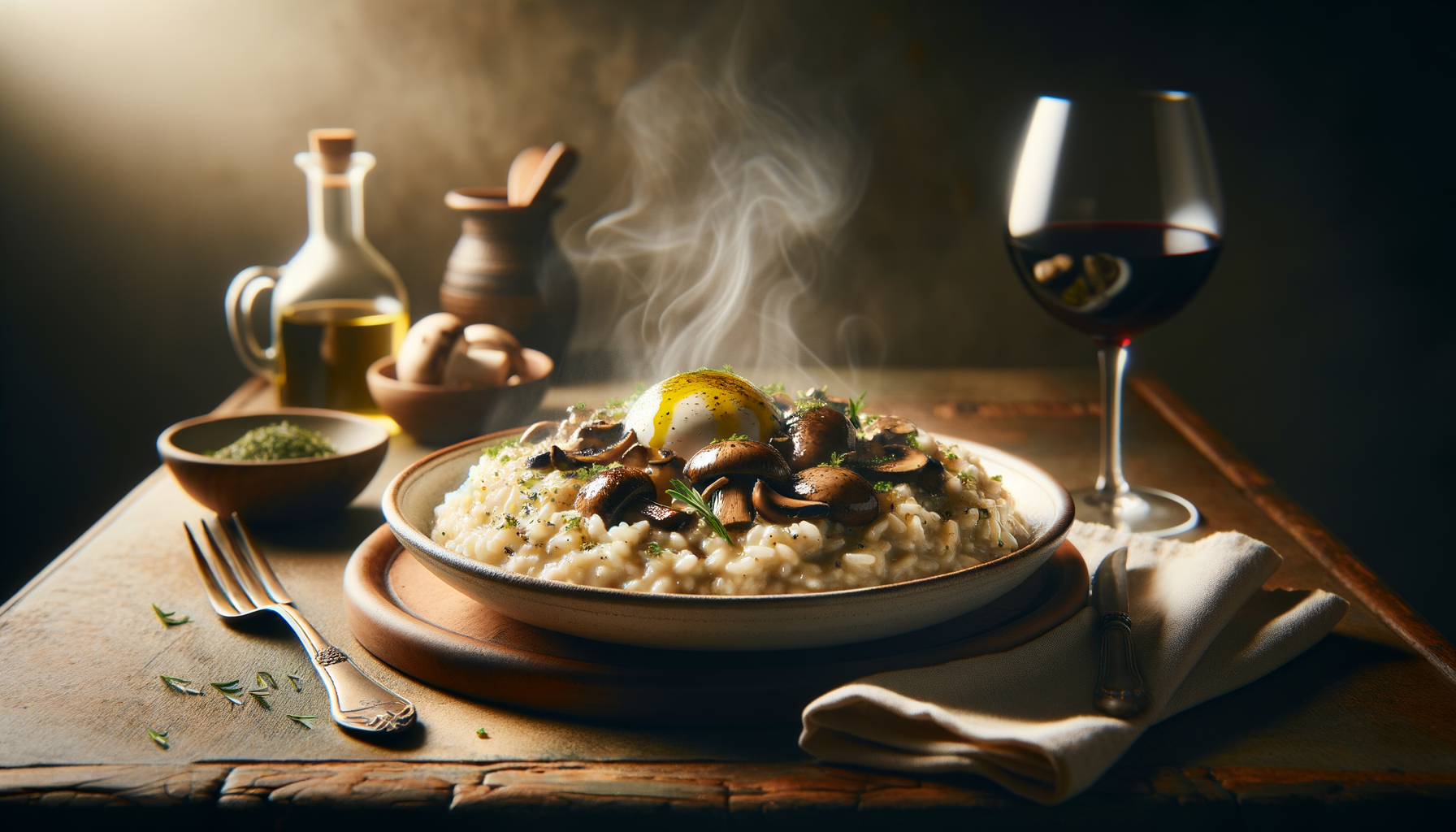 Risotto cu ciuperci este un fel de mâncare tradițional italian, apreciat pentru textura sa cremoasă și pentru aroma profundă pe care ciupercile o aduc în acest preparat. Risotto se prepară utilizând orez special, care absorbă lichidele adăugate treptat, eliberând amidonul care conferă cremozitatea caracteristică. Acest fel de mâncare combină simplitatea ingredientelor cu complexitatea tehnicilor de gătit, rezultând un preparat rafinat și reconfortant.