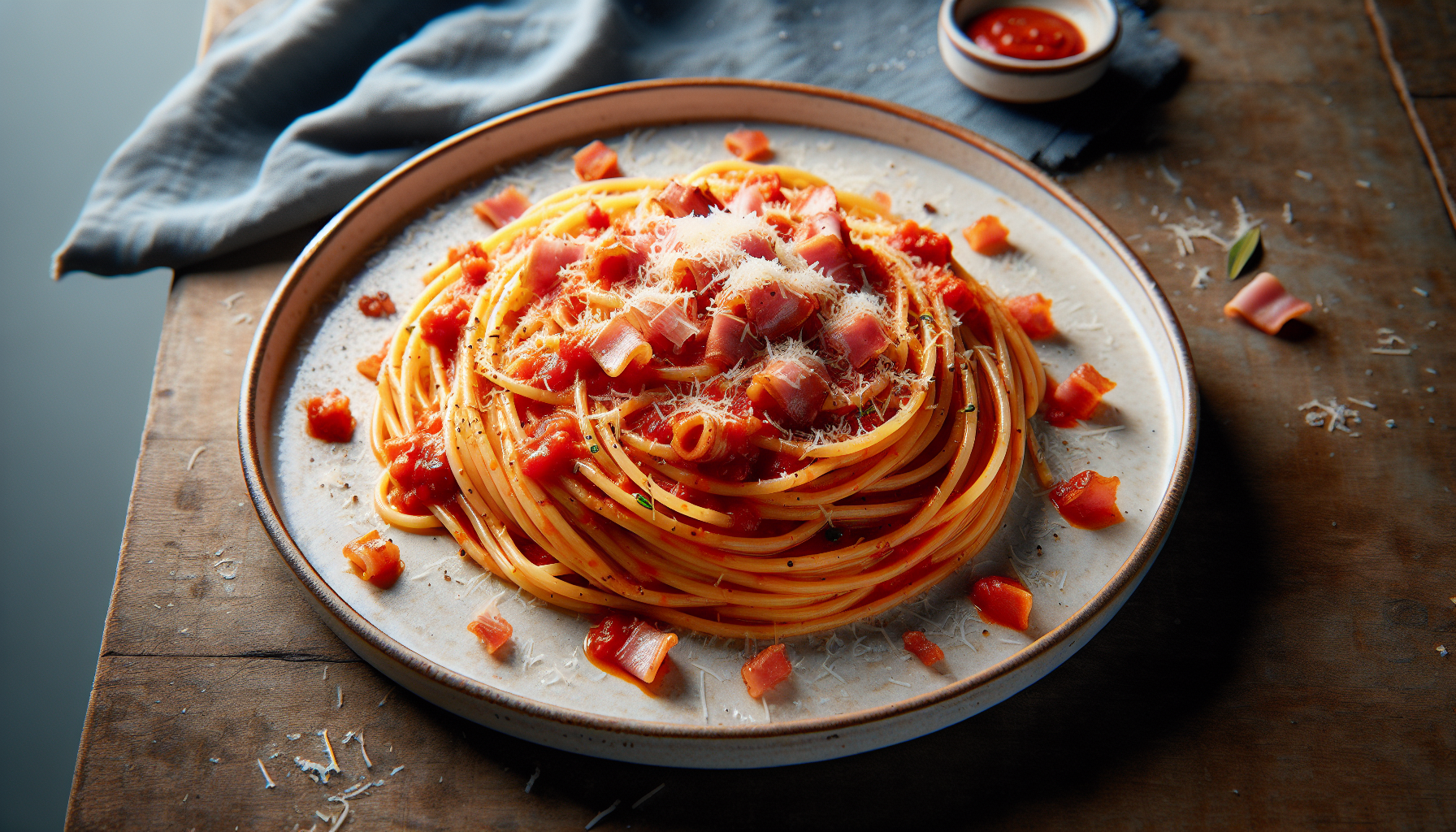 În alegerea ingredientelor pentru Spaghetti all'Amatriciana, calitatea este esențială. Pancetta, preferabil afumată, trebuie să fie de bună calitate, cu un echilibru între carne și grăsime care să garanteze aroma îmbietoare specifică acestui fel de mâncare. Roșiile trebuie să fie suculente și aromate, varietatea San Marzano fiind cea mai recomandată datorită dulceții și texturii sale care se pretează bine la sosuri. Pecorino romano este ideal să fie proaspăt și să fie ras în momentul preparării pentru a păstra întreaga sa aromă. Uleiul de măsline trebuie să fie extravirgin pentru a adăuga un plus de gust și finețe sosului final.