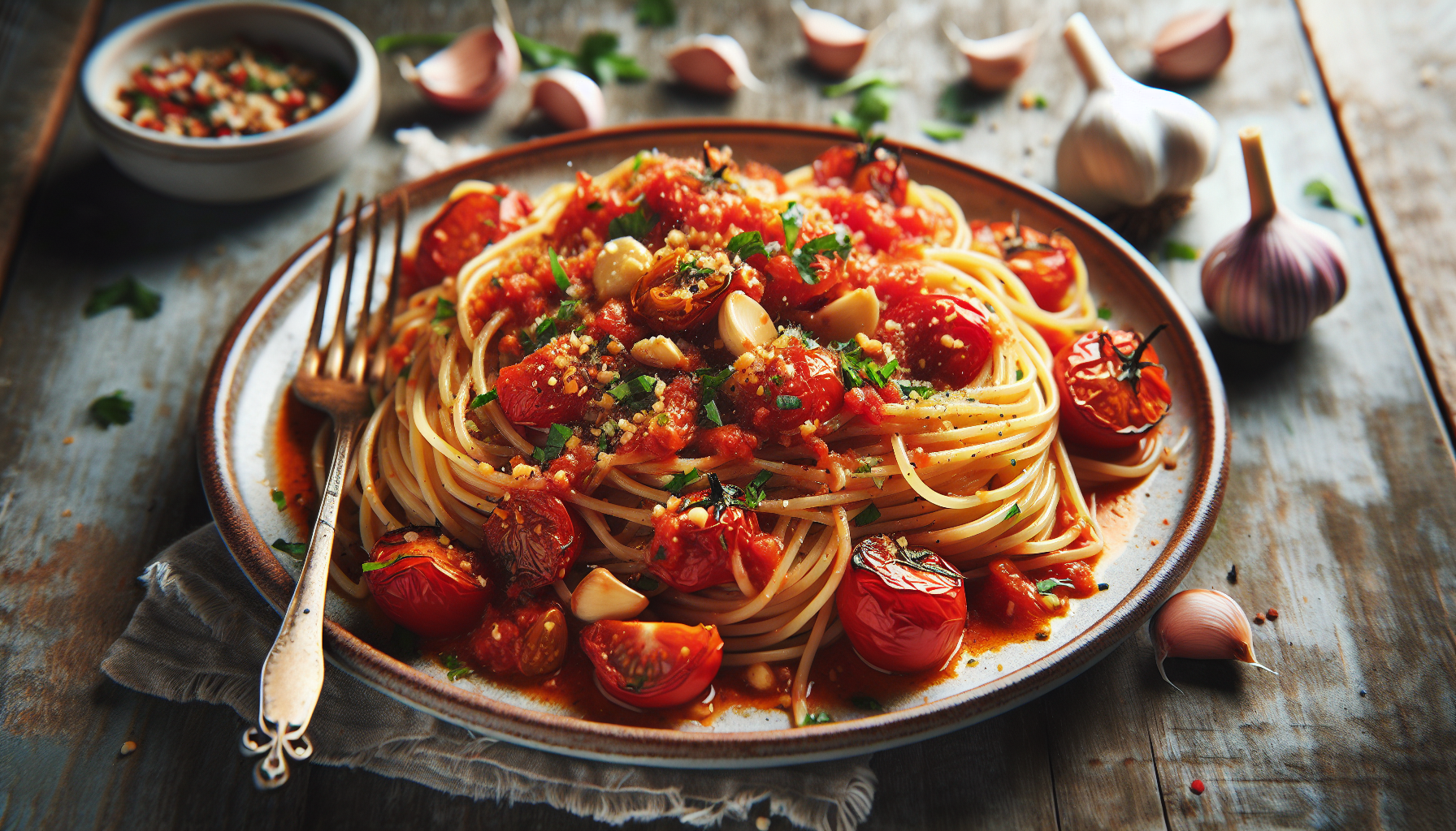 Spaghetti cu sos de roșii și usturoi copt este un fel de mâncare clasic, apreciat atât pentru savoarea sa intensă, cât și pentru simplitatea preparării. Acest preparat îmbină pasta al dente cu un sos de roșii bogat, având la bază usturoiul copt care adaugă o notă dulceagă și profundă. Este o rețetă versatilă, potrivită pentru un prânz în familie sau o cină cu prietenii, oferind o experiență culinară bogată, fără a complica prea mult procesul de gătit.
