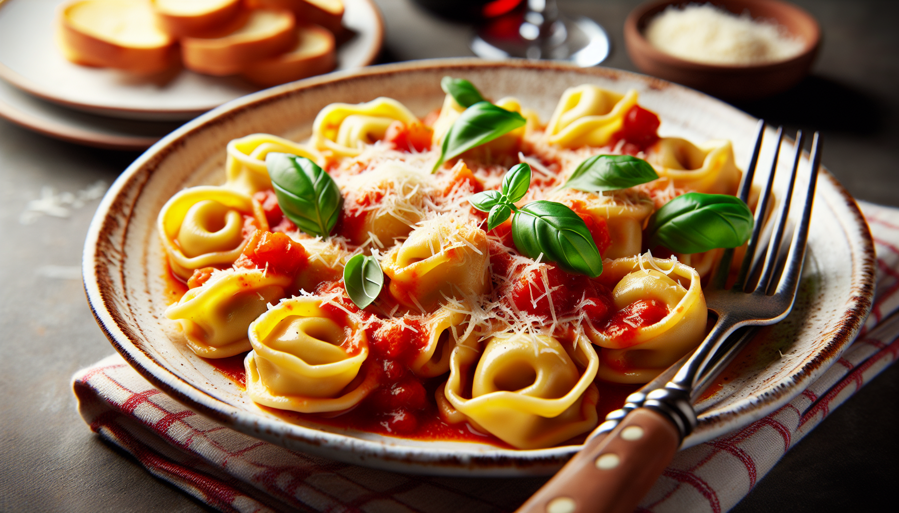 Tortellini sunt paste umplute tradiționale, originare din regiunea italiană Emilia-Romagna, fiind adesea umplute cu carne, brânză sau legume. În această rețetă, tortellini vor fi combinati cu un sos de roșii simplu, îmbogățit cu usturoi, busuioc și parmezan răzuit. Este o rețetă versatilă, care poate fi adaptată ușor preferințelor personale, adăugând diverse condimente sau alte tipuri de brânză.