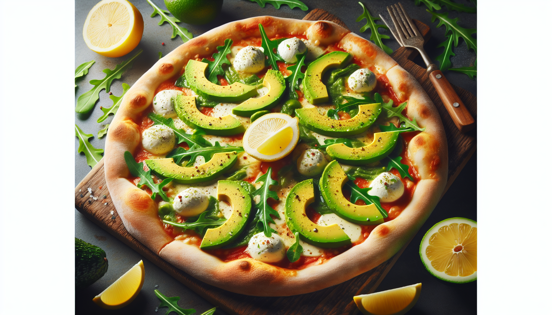 Avocado este bogat în grăsimi sănătoase, fibre și antioxidanți, având multiple beneficii pentru sănătate, inclusiv îmbunătățirea sănătății inimii și reducerea inflamației. Rucola, pe de altă parte, este săracă în calorii dar bogată în vitamina K și antioxidanți, făcând din această pizza o opțiune excelentă nu doar pentru gustul său distinct, dar și pentru proprietățile sale nutritive. Mozzarella adaugă o sursă valoroasă de proteină și calciu, în timp ce sucul de lămâie înviorăzează întregul preparat cu o notă de prospețime.