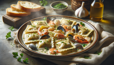 Introducere Descoperă savoarea inedită a raviolilor cu pește și fructe de mare Ravioli cu pește și fructe de mare într-un sos cremos de smântână constituie o alegere culinară sofisticată, perfectă pentru ocazii speciale sau pentru un prânz sau cină rafinată. Acest fel de mâncare combină textura delicată și aroma bogată a fructelor de mare cu...