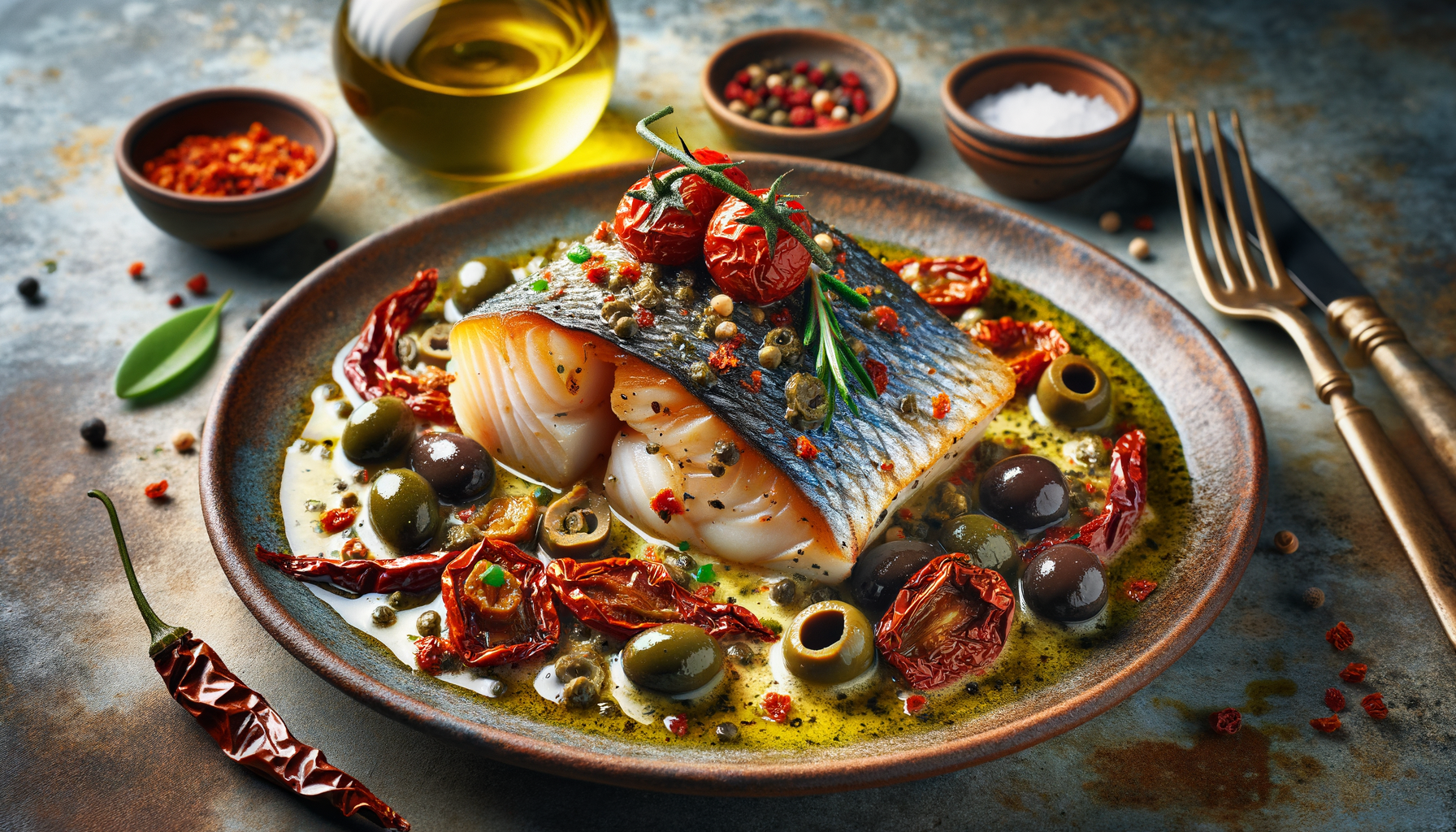 Acest preparat este inspirat din bucătăria mediteraneană, cunoscută pentru utilizarea generoasă a măslinelor, caperelor și roșiilor. Macroul, peștele star al acestei rețete, este apreciat pentru textura sa fermă și gustul său bogat, ce se complementează armonios cu sosul sărat-acrișor de măsline și capere. Roșiile uscate adaugă o notă dulceagă și textură, în timp ce vinul alb aduce un echilibru perfect, elevând aroma generală a preparatului.