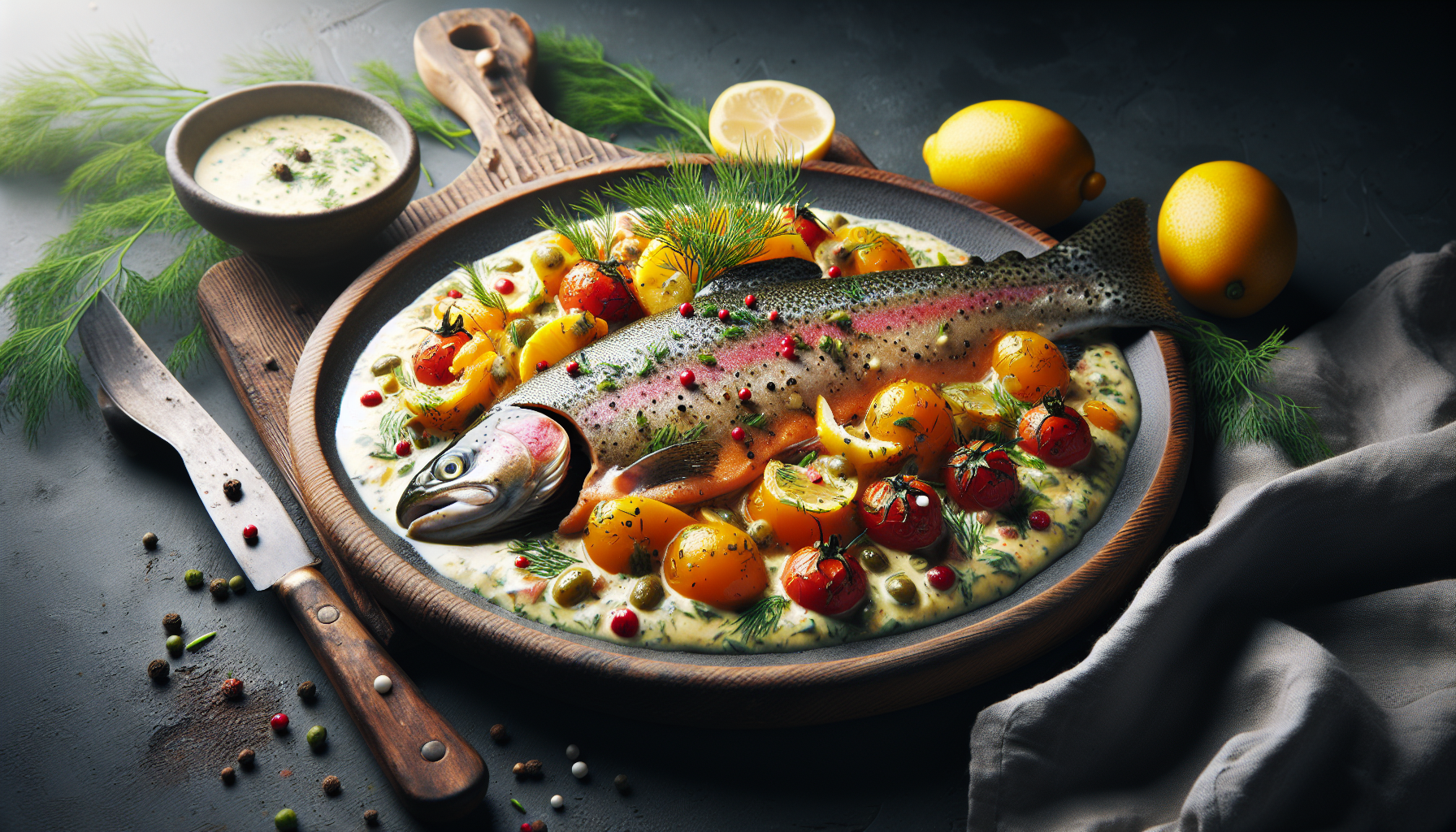 Peștele și fructele de mare sunt cunoscute pentru beneficiile lor nutriționale, fiind bogate în proteine de înaltă calitate și acizi grași esențiali omega-3. Păstrăvul, în special, este apreciat pentru carnea sa fragedă și gustoasă. Când este combinat cu smântâna și mărarul, se creează un sos voluptuos care îmbrățișează fileurile de pește, penetrând în profunzimea fibrelor lor pentru a le face și mai suculente și aromate.