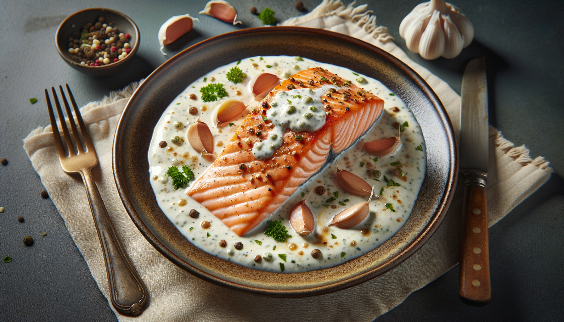 Somonul în sos de iaurt și usturoi reprezintă o combinație perfectă între gustul delicat al peștelui și aroma intensă a usturoiului, echilibrată de cremozitatea iaurtului. Această rețetă nu numai că este delicioasă, dar este și extrem de benefică pentru sănătate, oferind o sursă bogată de proteine, acizi grași Omega-3 și probiotice, datorită iaurtului. Este, fără îndoială, o opțiune excelentă pentru o cină rapidă, dar nutritivă. Descriere