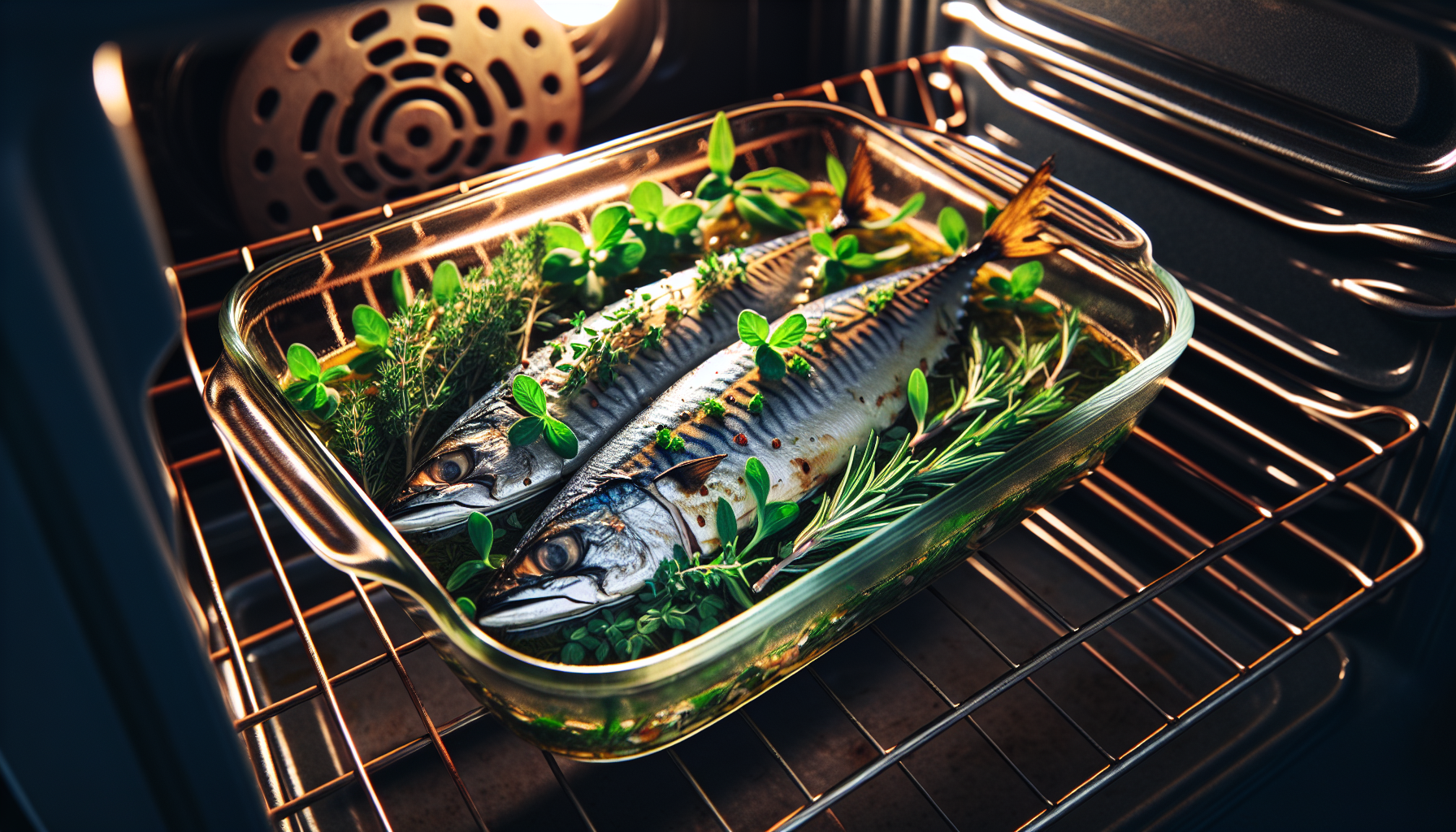 Prepararea macroului cu ierburi aromatic incepe cu preîncălzirea cuptorului la 200 de grade Celsius. Peștele trebuie spălat bine și uscat, iar interiorul acestuia condimentat cu sare și piper. Într-un bol mic, amestecați sucul și coaja de lămâie cu usturoiul și uleiul de măsline, apoi ungeti peștele cu acest amestec. În cavitatea macroului, adăugați rozmarinul și cimbrul. Peștii se așază într-un vas de copt uns cu puțin ulei și se coc în cuptor timp de 20-25 de minute sau până devin fragezi și rumeniți.