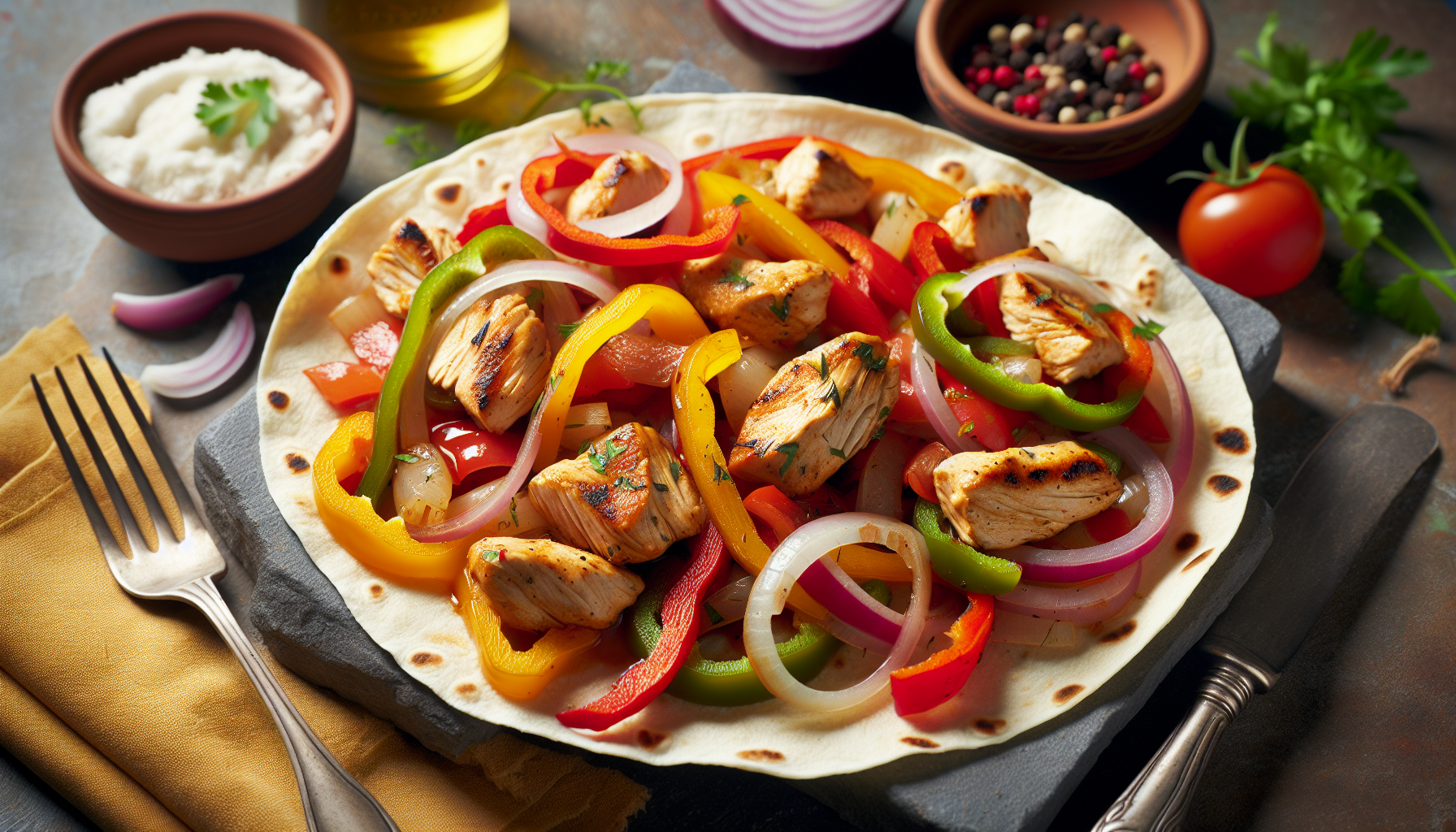 "Bucăți de pui cu ardei și ceapă, servite în tortilla" este o rețetă delicioasă și ușor de preparat, perfectă pentru un prânz rapid sau o cină savuroasă. Inspirată din bucătăria tex-mex, aceasta combinație de pui suculent, ardei crocanți și ceapă aromată, totul încapsulat într-o tortilla moale, este atât satisfăcătoare, cât și gustoasă. Acest fel de mâncare poate fi personalizat în funcție de preferințele de condimente și acoperiri, făcându-l ideal pentru familii sau grupuri cu gusturi variate.