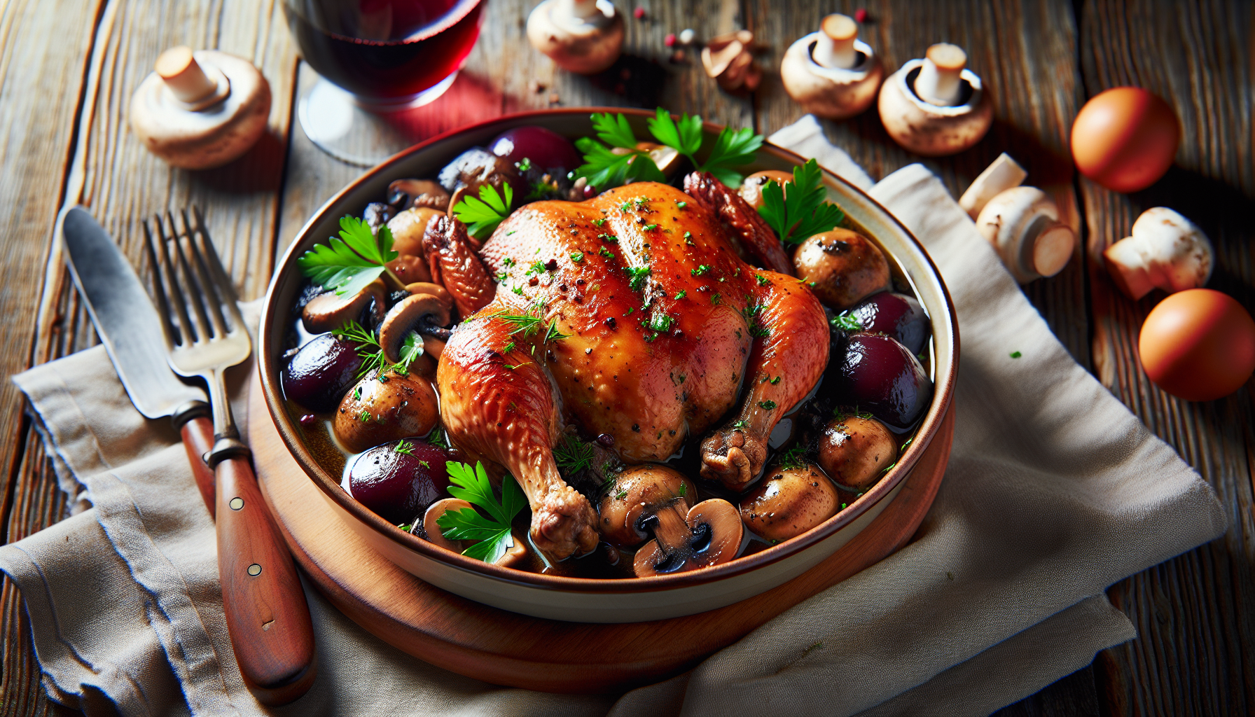 Când se vorbește despre bucătăria franceză, unul dintre cele mai emblematici preparate este Coq au Vin, sau „Cocoș în vin”. Acest preparat tradițional francez combină aromele bogate ale vinului, cu textura delicată a cărnii de pui și savoarea legumelor și condimentelor. Istoria acestui fel de mâncare se întinde pe parcursul a sute de ani în Franța rurală, evoluând de la un simplu preparat țărănesc la unul apreciat în întreaga lume.