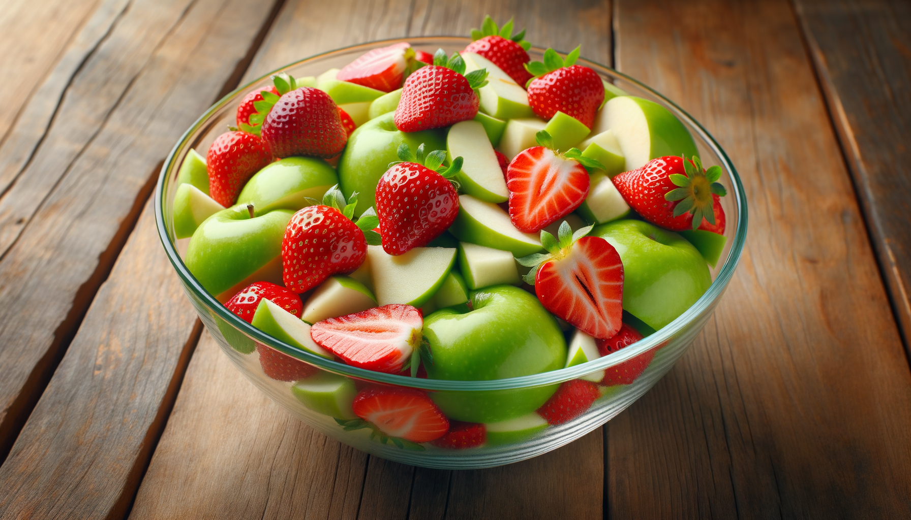 Salata de măr verde și căpșuni nu este doar apetisantă și frumoasă la vedere, dar este și un festin nutritiv. Merele verzi sunt cunoscute pentru conținutul lor bogat în fibre, vitamina C și antioxidanți, în timp ce căpșunile aduc o bogăție de vitamine, minerale și antioxidanți, inclusiv vitamina C și mangan. Combinând aceste fructe, obținem o salată care nu doar că satisfac gusturile, dar contribuie și la sănătatea sistemului imunitar, la îmbunătățirea digestiei și la combaterea stresului oxidativ.