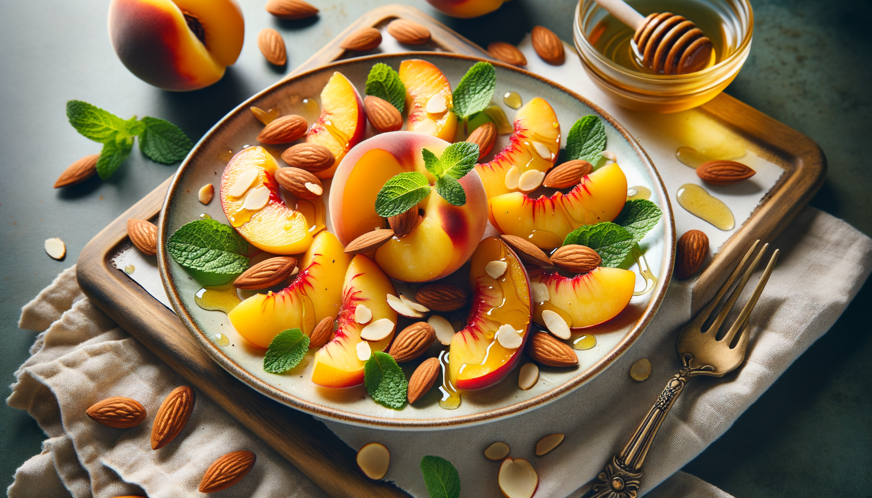 Salata de piersici și migdale este o preparație ușoară, care nu necesită mult timp de pregătire, dar care impresionează de fiecare dată prin textura sa și prin echilibrul de gusturi. Piersicile, suculente și parfumate, se combină armonios cu migdalele crocante, în timp ce mierea adaugă un nivel suplimentar de dulceață și legătură între celelalte ingrediente.