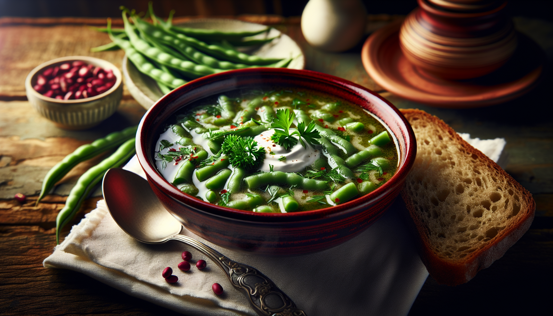 Ciorba de fasole verde se servește cel mai bine fierbinte, alături de o felie de pâine de casă sau crutoane. Acestea vor completa savoarea legumelor și vor transforma masa într-o experiență gastronomică de neuitat.