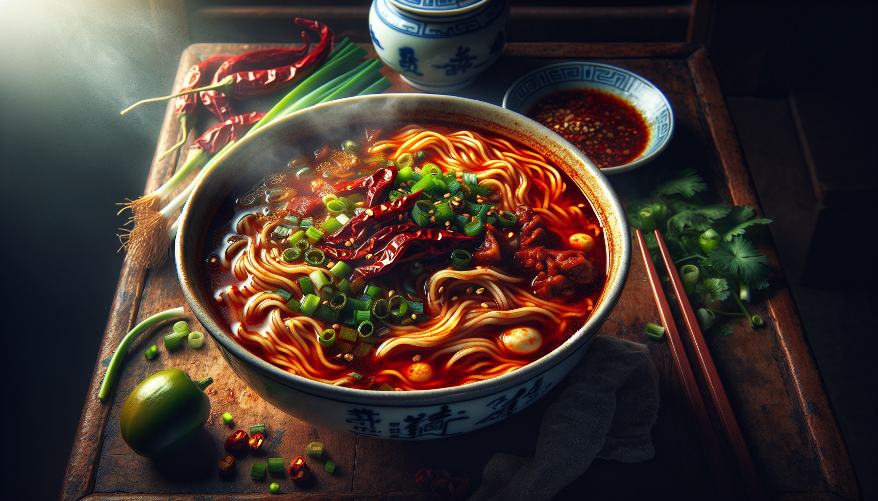 Pentru a prepara autentica supă picantă de tăieței Chongqing pentru aproximativ 4 porții, veți avea nevoie de următoarele ingrediente: