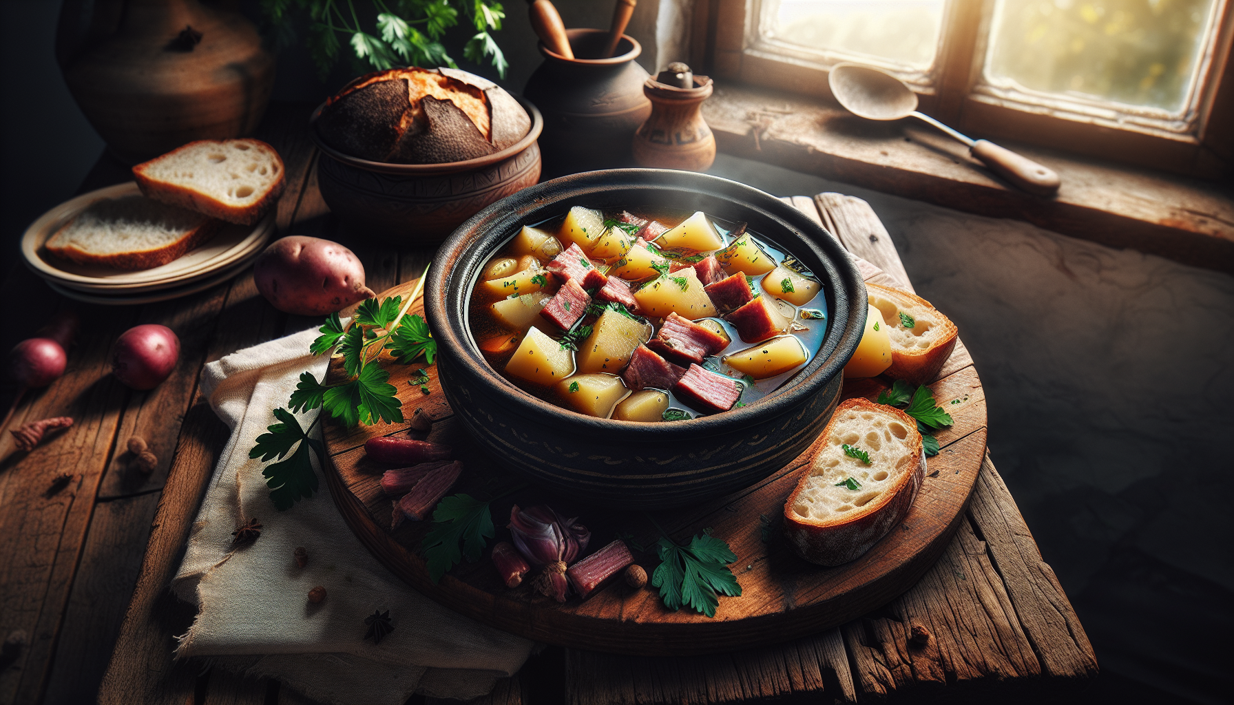 Ciorba de cartofi cu afumătură este o mâncare tradițională românească, apreciată pentru gustul său intens și satisfăcător. Este o rețetă populară în rândul gospodinelor din România, fiind adesea servită în zilele reci de iarnă pentru a încălzi sufletele. Acest fel de mâncare combină savoarea cartofilor cu aroma bogată a afumăturii, creând un echilibru perfect între simplitate și complexitatea gusturilor.