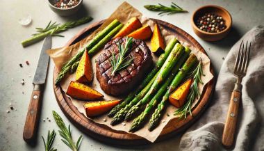 Friptură de vită la cuptor cu cartofi dulci și sparanghel Această rețetă îmbină savoarea unei fripturi suculente de vită cu legume delicioase și sănătoase precum cartofii dulci și sparanghelul. Este o masă consistentă, perfectă pentru dieta Paleo, plină de proteine și fibre. Ingrediente (pentru 4 porții): Friptură de vită...