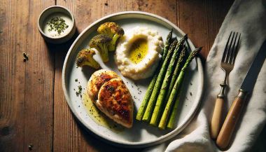 Piept de Pui la Cuptor cu Sparanghel și Piure de Conopidă Această rețetă oferă o combinație ușoară și sănătoasă de piept de pui fraged, servit cu sparanghel crocant și piure de conopidă cremos. Este o masă ideală pentru dieta Paleo, plină de proteine și legume nutritive. Ingrediente (pentru 2...