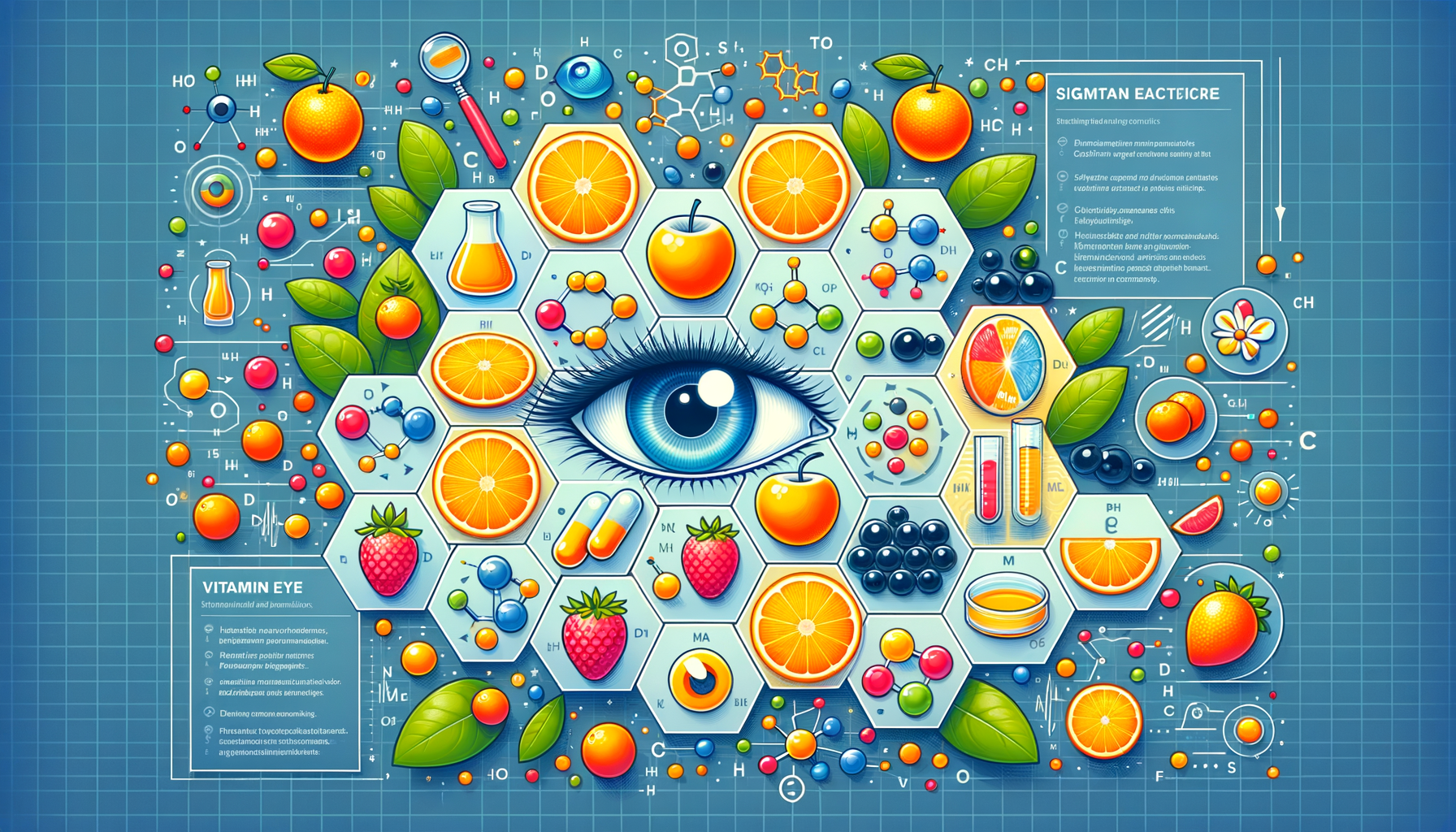 Vitamina C nu acționează singură; aceasta interacționează sinergic cu alte vitamine și minerale pentru a susține sănătatea oculară. În special, combinația dintre vitamina C, vitamina E și beta-caroten este esențială pentru protecția oculară.