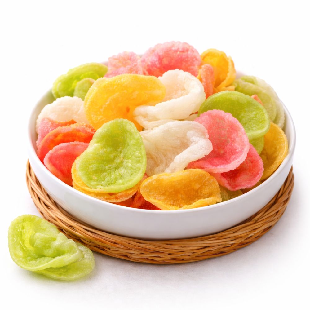 Chipsurile multicolore din creveți (Prawn Crackers / Kroepoek) sunt discuri deshidratate specifice bucătăriei asiatice, realizate pe bază de creveți și amidon de tapioca. În forma lor crudă sunt rondele subțiri, translucide, în culori vibrante – galben, verde, portocaliu și alb.