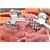Frăgezirea cărnii: Ciocanul de frăgezire este folosit pentru a frăgezi bucățile de carne mai tari și mai fibroase, cum ar fi cotletele de porc, antricotul sau mușchiul de vită. Loviturile ușoare aplicate cu ciocanul de frăgezire ajută la ruperea țesutului conjunctiv și la îndepărtarea fibrelor dure, ceea ce face carnea mai fragedă și mai ușor de mestecat.