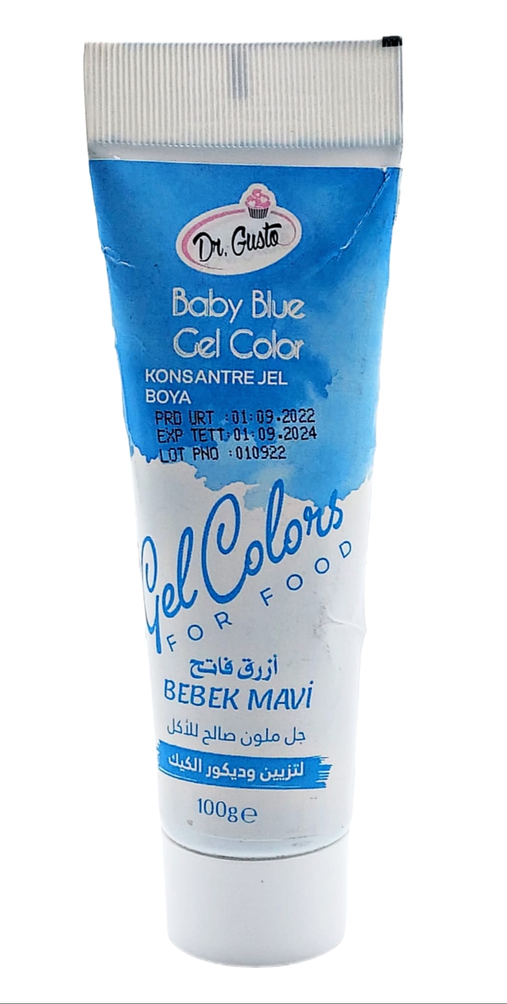 Colorant Alimentar Gel – Concentrat- Hidrosolubil & Liposolubil –Tub Plastic - 100 Grame – Dr Gusto - Albastru Deschis - Baby Blue