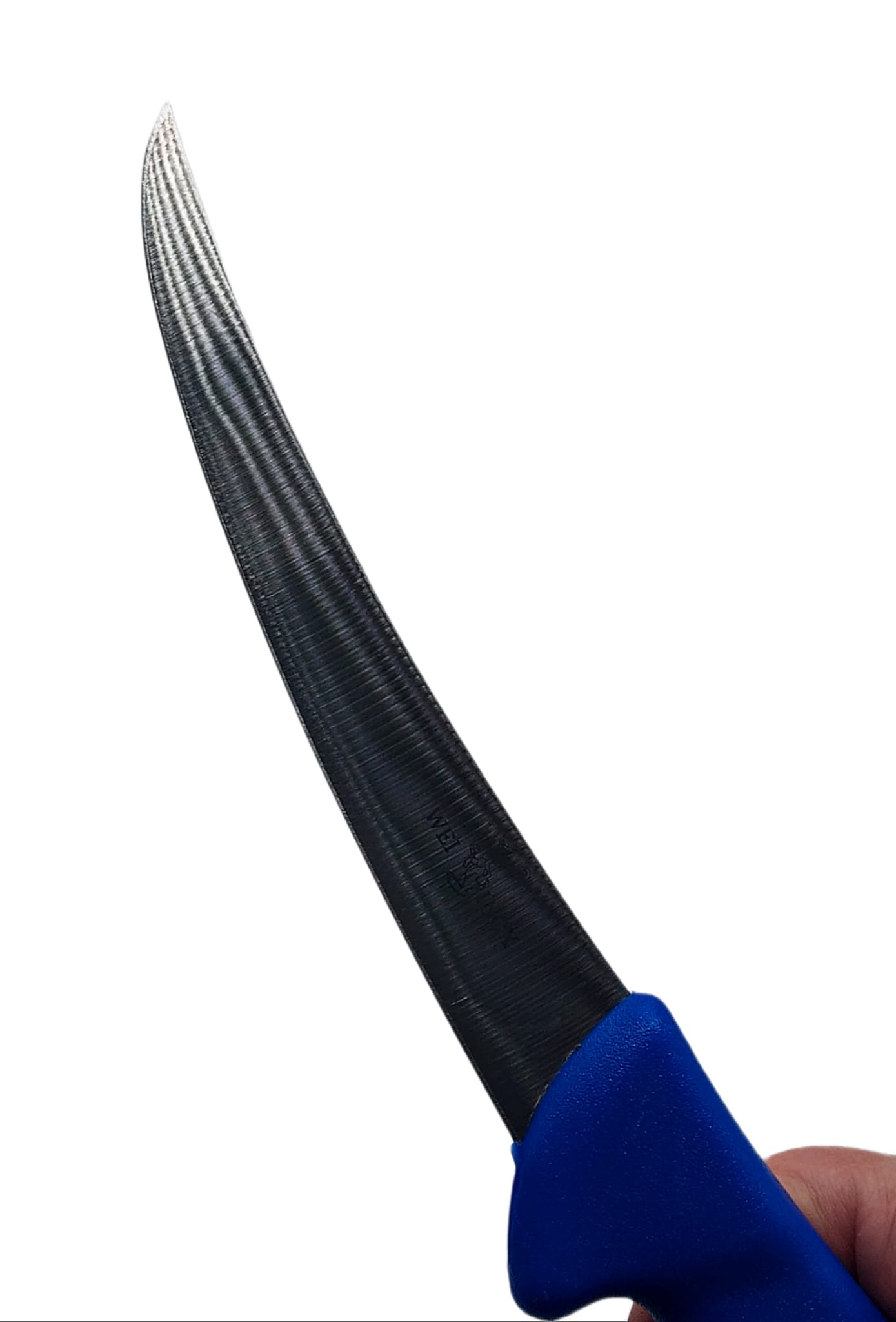 • Cuțit pentru dezosare: este un cuțit special conceput pentru a tăia oasele din carne. Acest tip de cuțit are o lamă groasă, robustă și rigidă, cu o curbă ușoară pentru a ușura tăierea în jurul oaselor. De obicei, are o lungime de lamă de aproximativ 15-20 de centimetri, iar mânerul este proiectat astfel încât să ofere o prindere sigură și confortabilă.