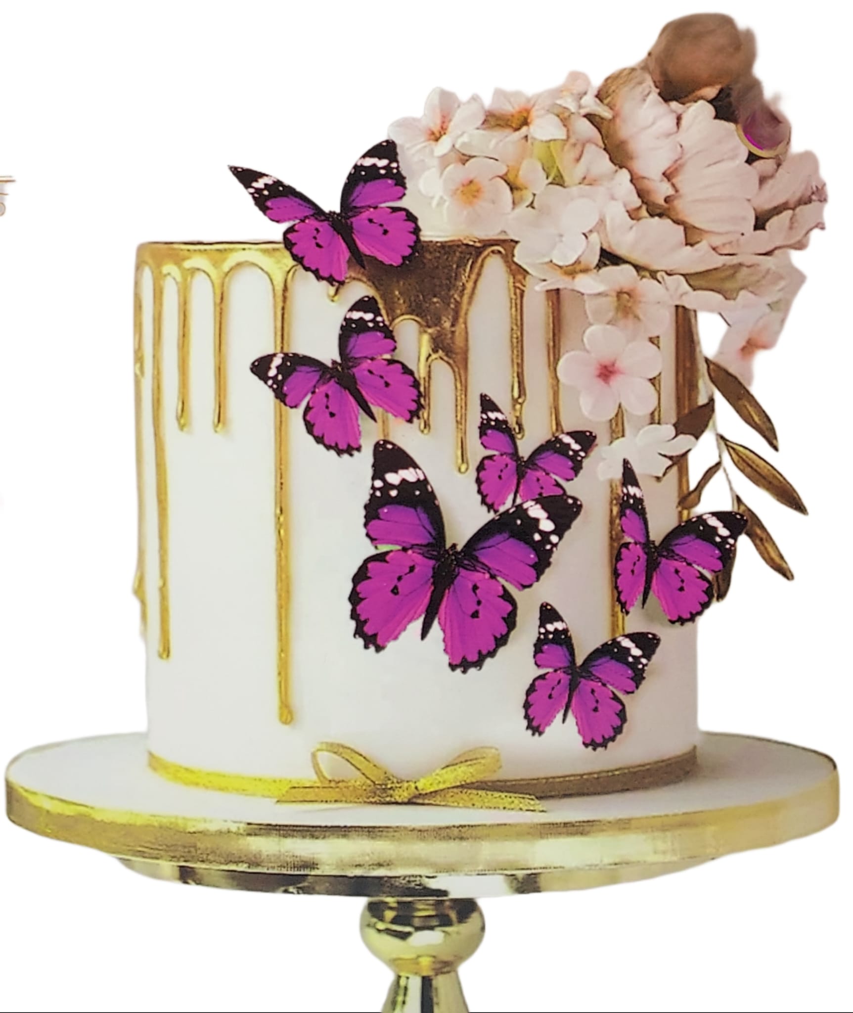 - Pentru decoruri complexe puteți utiliza fluturii de hartie impreuna cu alte decorațiuni comestibile, cum ar fi flori sau fructe, pentru a adăuga un plus de culoare și textură tortului