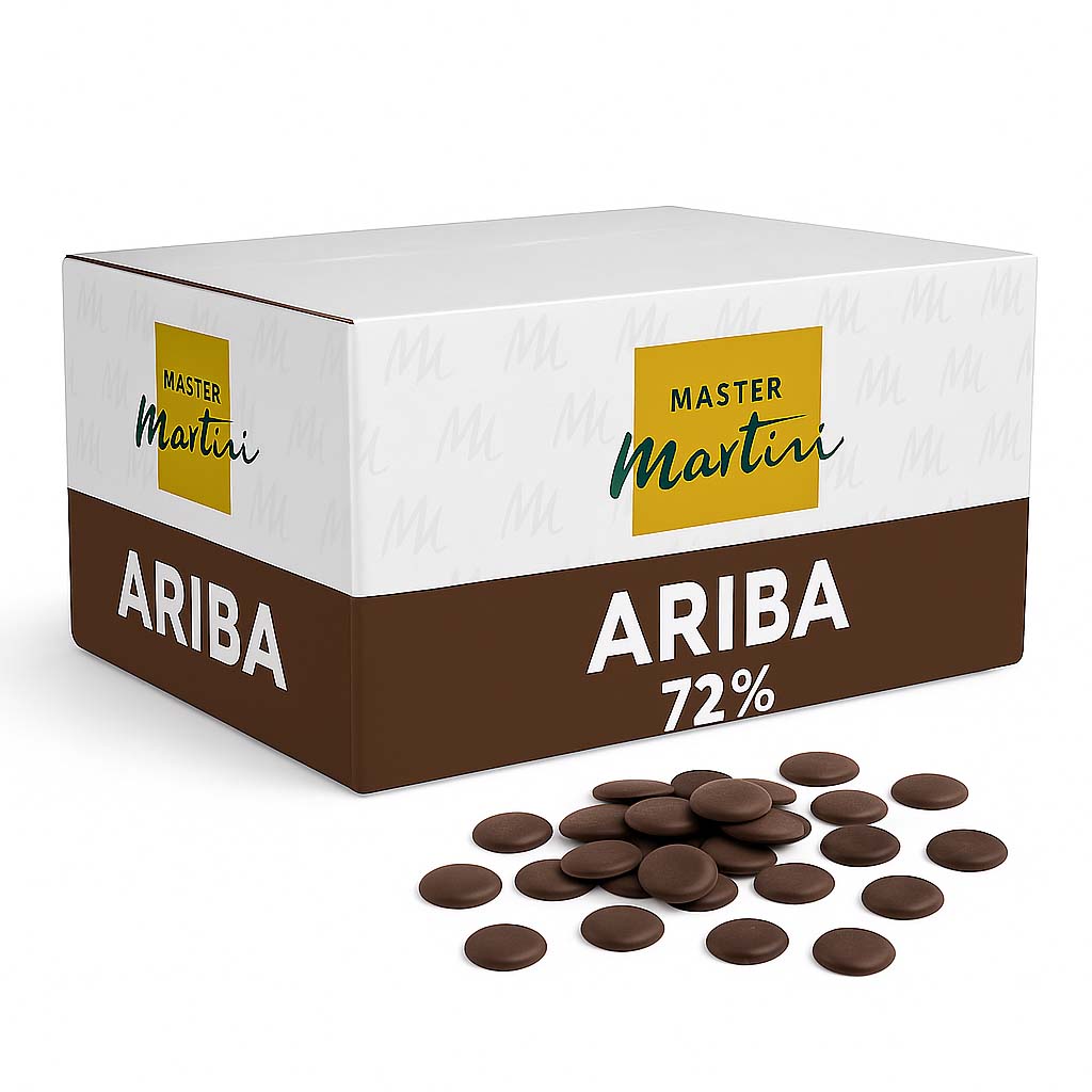 Ariba Dark 72% este o ciocolată neagră premium sub formă de discuri (bănuți), creată de specialiștii italieni Master Martini, recunoscuți pentru tradiția și excelența lor în arta ciocolateriei.