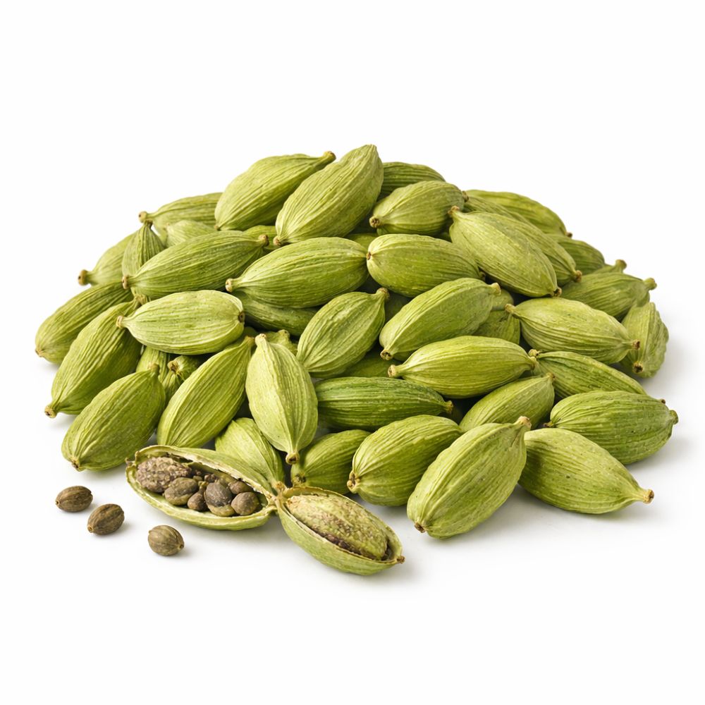 Cardamomul verde este unul dintre cele mai apreciate condimente din lume, recunoscut pentru aroma sa intensă, proaspătă și ușor dulce-picantă. Păstăile de cardamom verde indian conțin semințe foarte aromate, utilizate atât în preparate dulci, cât și sărate.