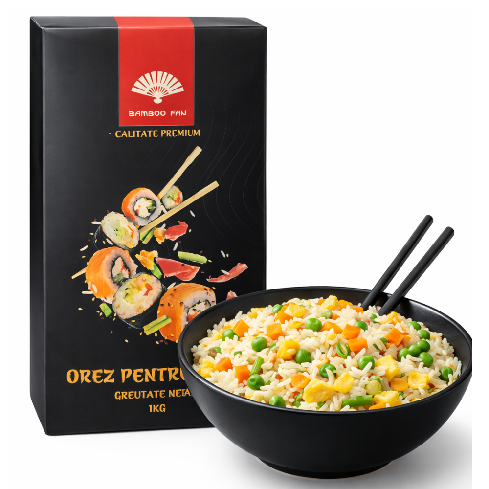 Orezul pentru sushi Bamboo Fan este alegerea ideală pentru preparate asiatice autentice, oferind textura perfectă și consistența necesară pentru sushi, dar și pentru o varietate de rețete moderne.
