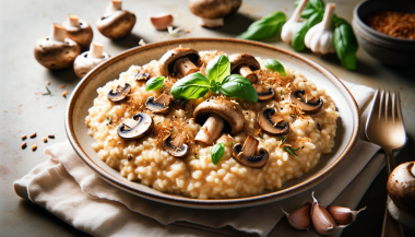 Descriere Risotto cu ciuperci, usturoi granulat și busuioc este o variantă aromatică și reconfortantă a clasicului risotto italian. Această rețetă îmbină savoarea bogată a ciupercilor cu parfumul intens al usturoiului granulat și prospețimea busuiocului, creând un fel de mâncare cremos și plin de gust, perfect pentru un prânz sau o cină elegantă. Acest...