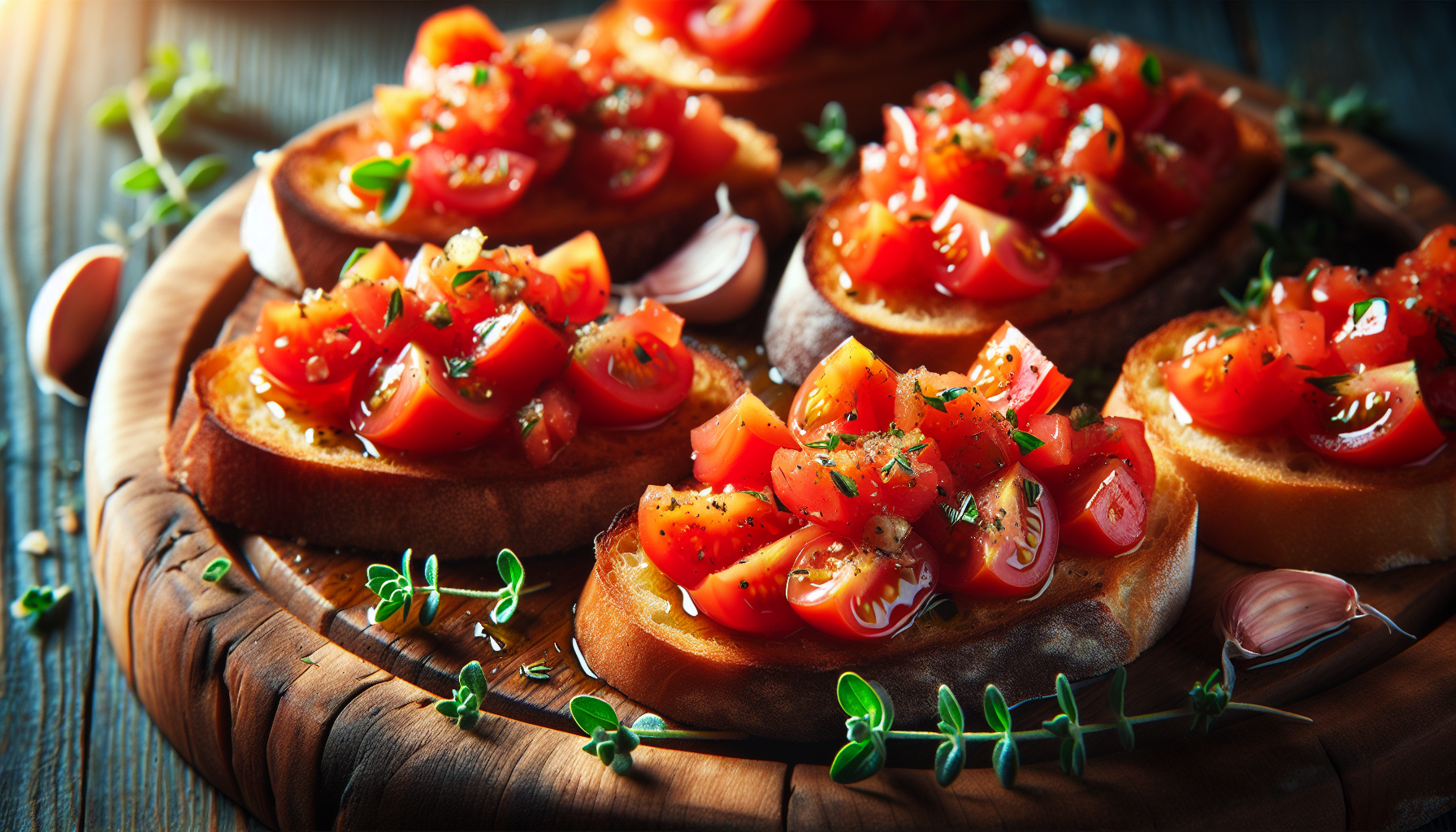 Bruschetele cu roșii, usturoi și oregano reprezintă un aperitiv delicios și revigorant, perfect pentru orice ocazie. Acest preparat îmbină savoarea simplă a roșiilor proaspete cu aroma intensă a usturoiului și a oreganoului, oferind o explozie de gust în fiecare înghițitură. Bruscheta, originară din Italia, a devenit populară în întreaga lume datorită simplității și versatilității sale. Este ideală ca starter într-un meniu mai amplu, dar poate fi, de asemenea, servită ca o gustare sănătoasă între mese.