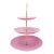 Platou Suport Etajat – 3 Nivele- Plastic - Margini Dantelate – Aperitive & Prajituri- Roz- A13556
