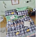 Set Lenjerie - Pat 1 Persona-Model Carouri & Masinute & Casute & Pisicute - Gri & Verde - 4 Piese - Bumbac/ Finet - 160cm X 220 cm 4D - 013