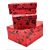 Set 3 Cutii Cadouri – Dreptunghiulare – Carton – 3 Dimensiuni – Rosii- Model Inimi Mari Negre- A 11299