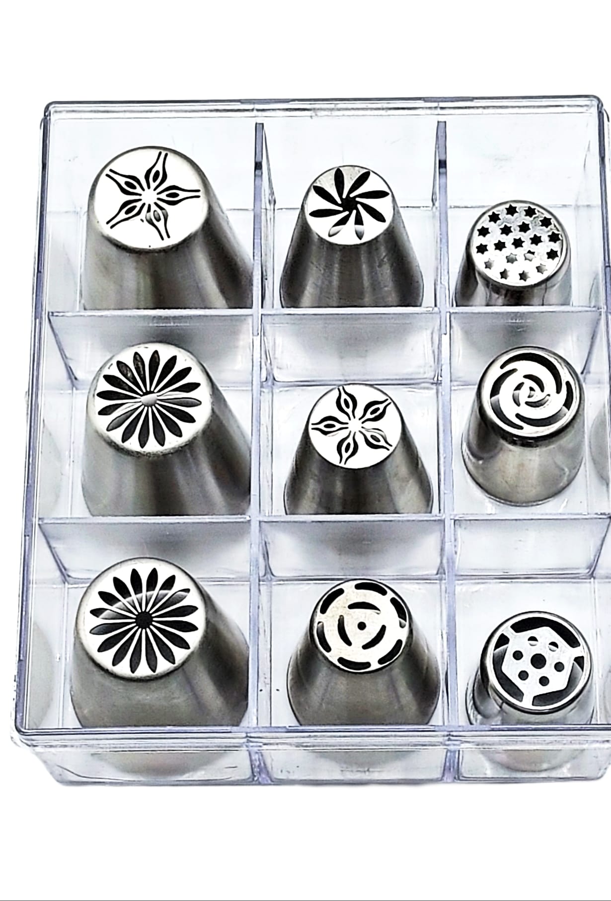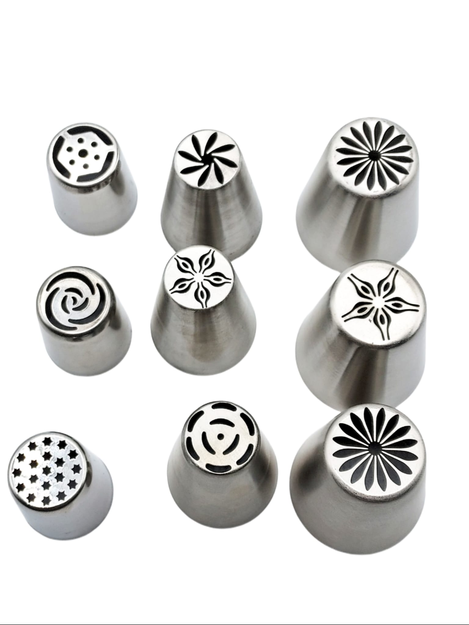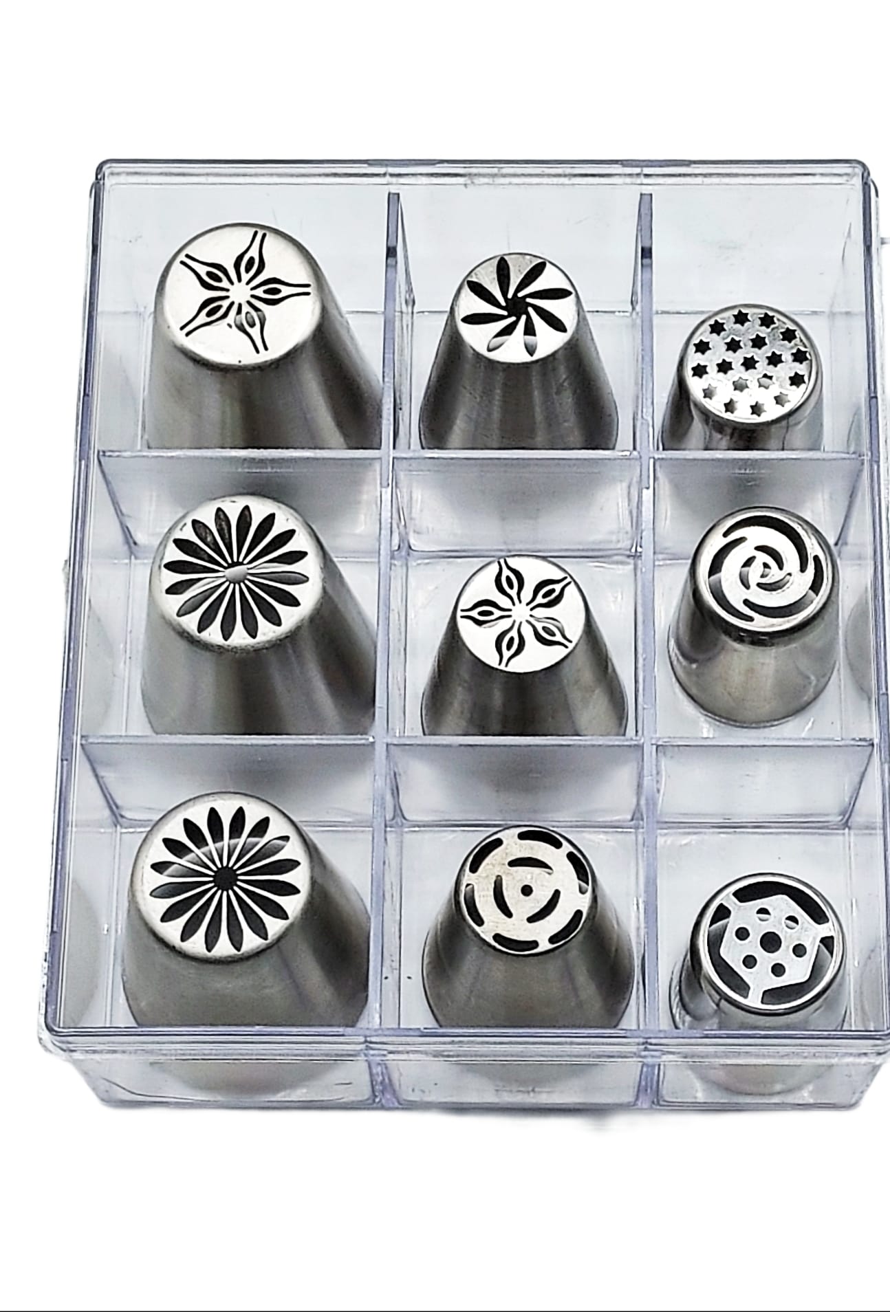 - Torturile si deserturile realizate in casa sunt apreciate si foarte cautate.Setul de 9 duze va permite sa creati adevarate opere de arta dulci, demne de cofetarii profesionisti