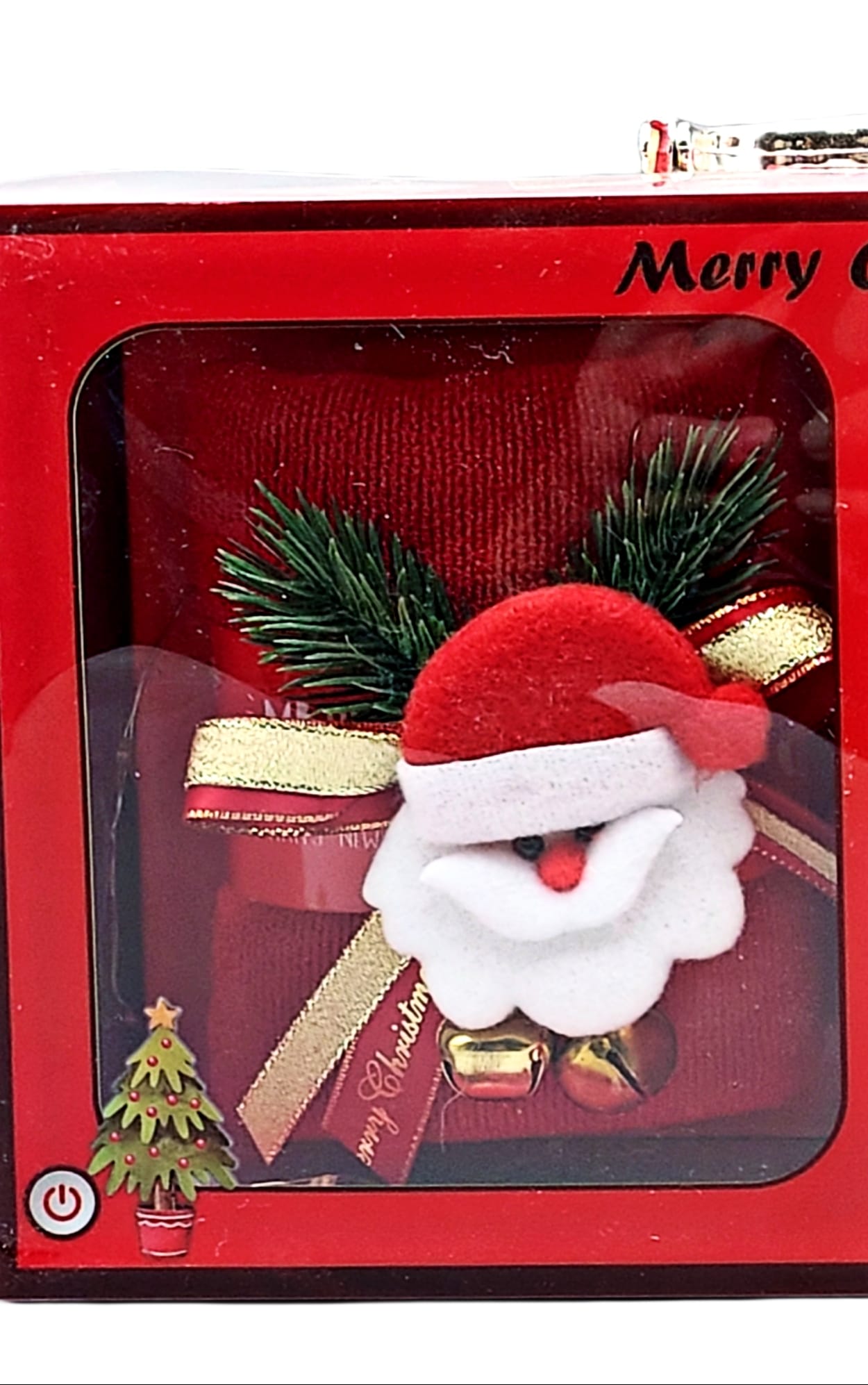 • Set cadou, cana, lingurita si farfurie ceramica si un prosopel cu tematica Craciun ambalat intr-o cutie de carton cu capac de plastic transparent, dreptunghiulara, sub forma de geamantan cu maner de plastic, cu 2 viziere