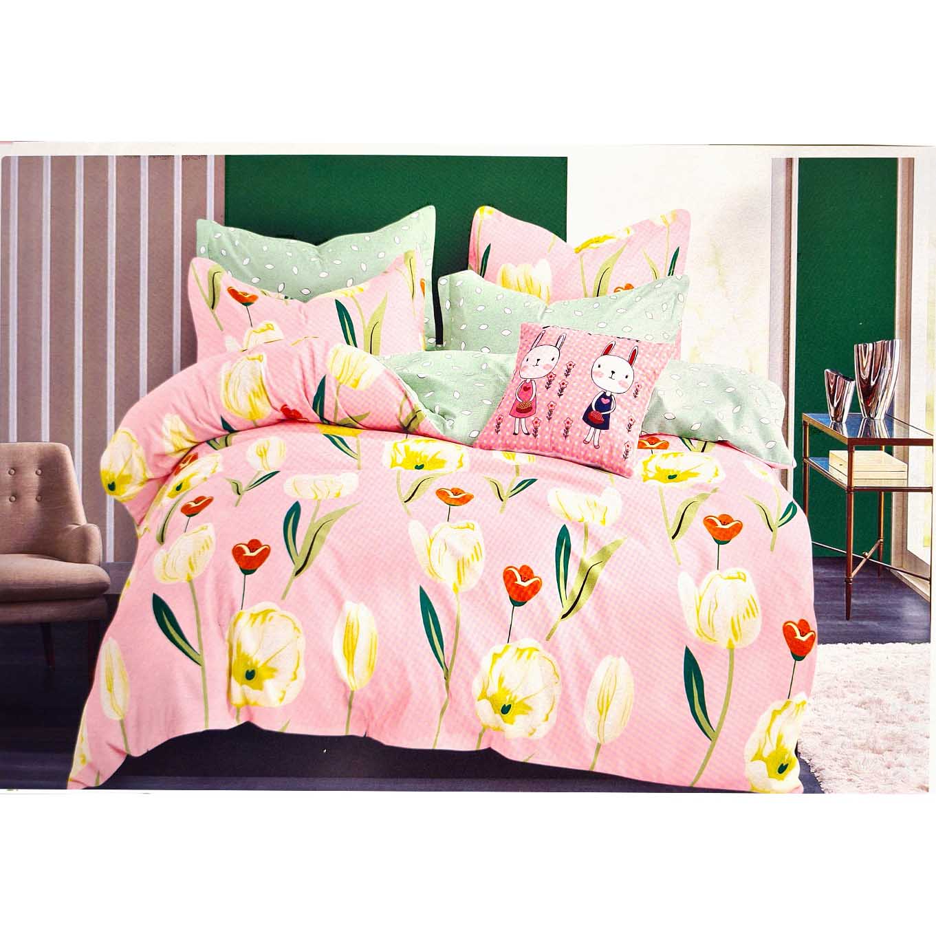 Set Lenjerie - Pat Dublu - 4 Piese- Model Floral - Culoare Roz - 220 cm x 240 cm - 4D-005
