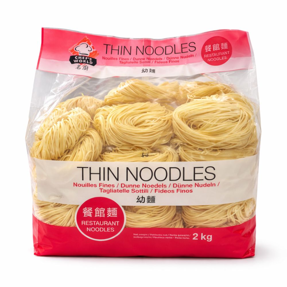Tăițeii Chef’s World Thin Noodles sunt tăiței subțiri ideali pentru preparate asiatice autentice. Au o textură fină, elastică după fierbere și absorb foarte bine aromele din supă sau sos.