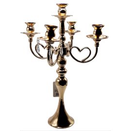 Sfesnic Cu Picior – Model Candelabru - Fier & Cristale Plastic – 5 Lumanari - Auriu ...