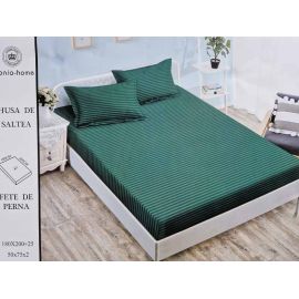 Husa Saltea & 2 Fete Perne - Bumbac - Verde Inchis & Dungi Orizontale - 180 cm x 20...