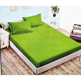 Husa Saltea & 2 Fete Perne - Bumbac - Verde Aprins & Dungi Orizontale - 180 cm x 2...