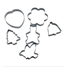 Set 6 Decupatoare Metalice -Pasare & Floare & Brad & Ursulet & Clopotel & Inima- A 12728