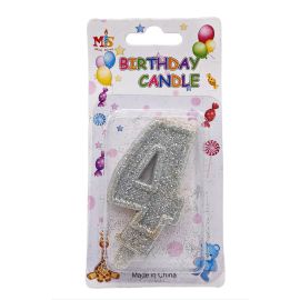 Birthday Candle - Lumanare Tort – Aniversare - Cifra 4 – Alb & Argintiu & Glitter