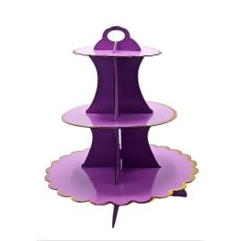 Suport Etajat Cupcake & Prajituri – Carton - 3 Platouri - Mov - Margini Dantelate &...