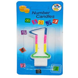 Mumber Candle - Lumanare Tort – Aniversare - Cifra 1 – Alb & Margini Colorate - A 03621